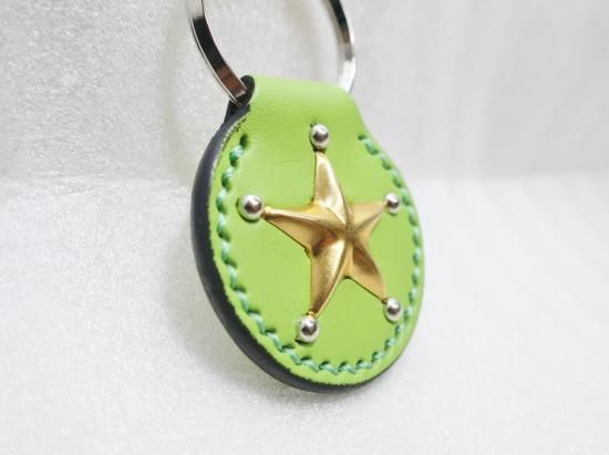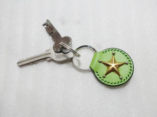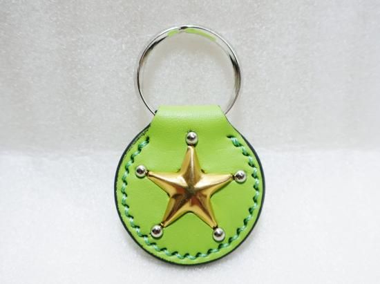 スタッズキーホルダー/サドルレザー・ライムグリーン