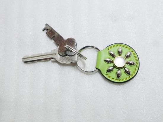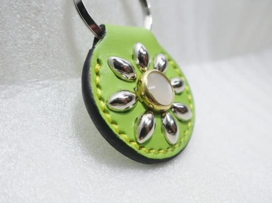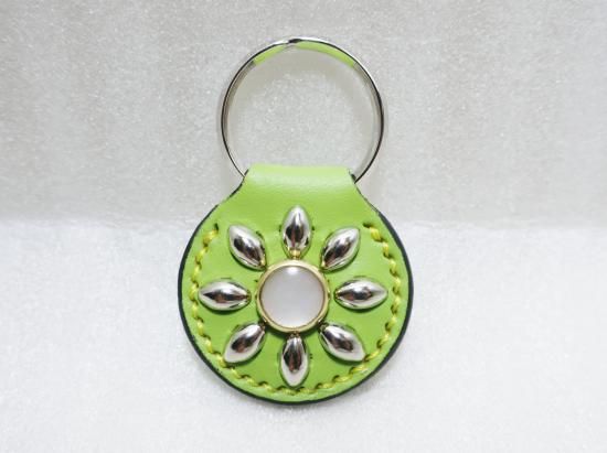 スタッズキーホルダー/サドルレザー・ライムグリーン