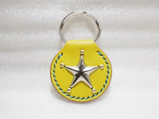 スタッズキーホルダー/サドルレザー・Yellow