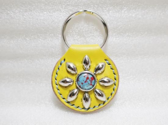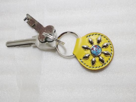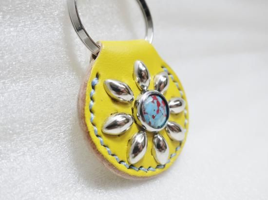 スタッズもくすみ、味わいの出るキーホルダーです。