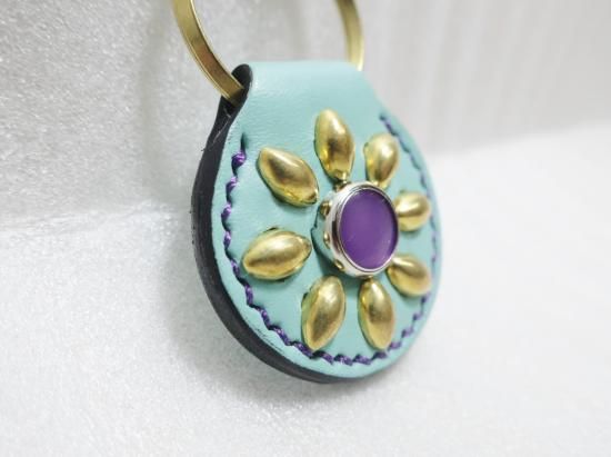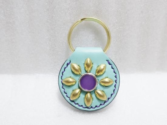 スタッズキーホルダー/サドルレザー・ミントグリーン