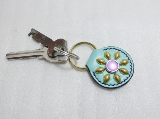 スタッズもくすみ、味わいの出るキーホルダーです。