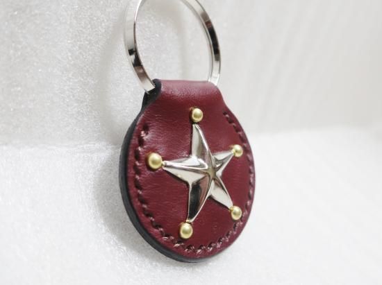 スタッズキーホルダー/サドルレザー・BURGUNDY