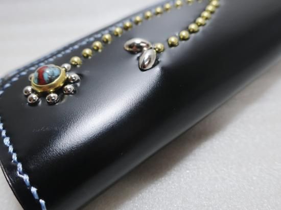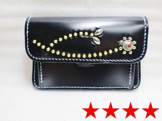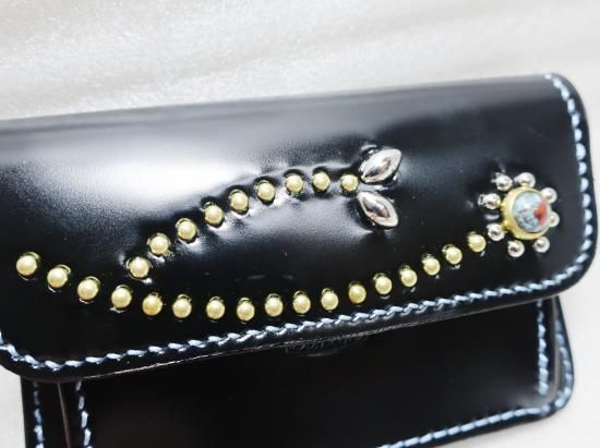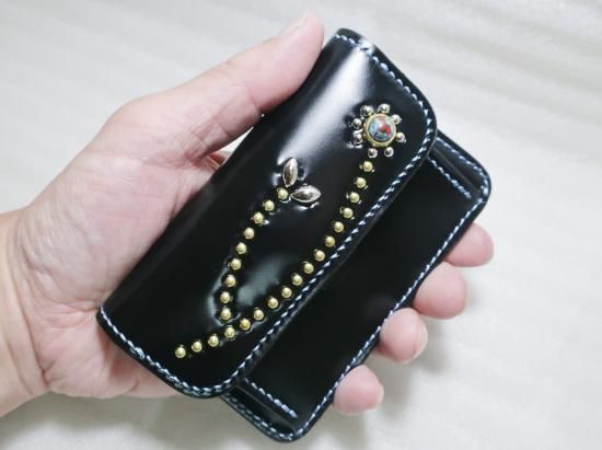 コインケース/小銭入れ/コードバン/革財布/ミニ財布/スタッズ/カードケース/レザークラフト/ハンドメイド/馬革/革小物/手縫い