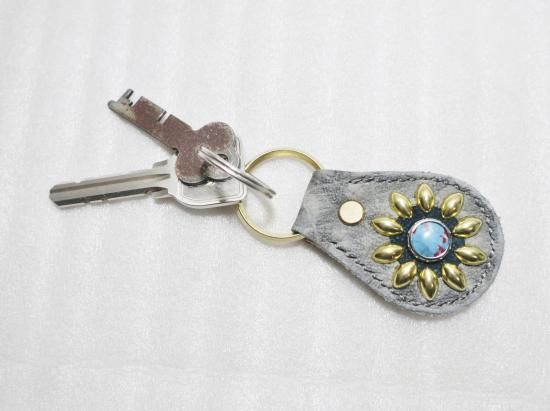 スタッズもくすみ、味わいの出るキーホルダーです。